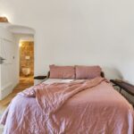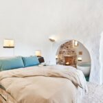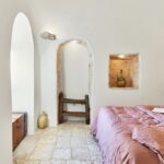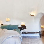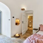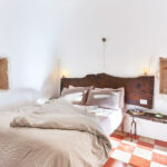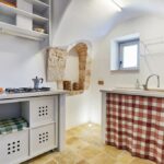 Il soffitto altissimo a forma di cono è molto suggestivo e la casa è ricca di archi e nicchie in pietra tipici di queste abitazioni rurali.